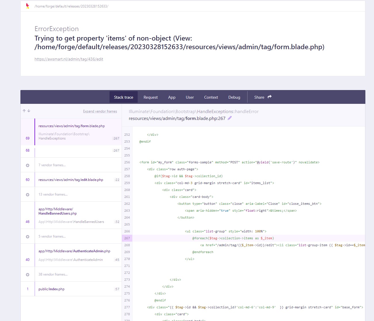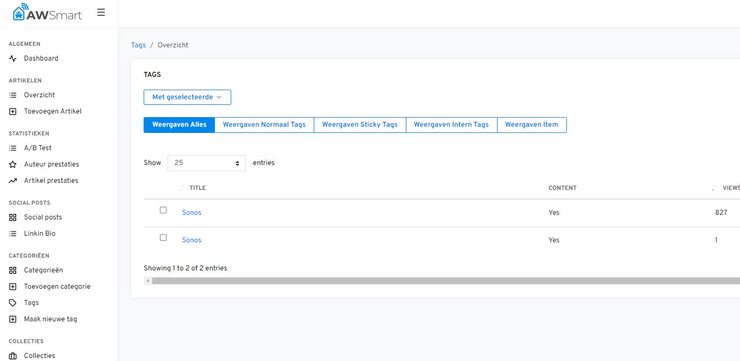 Sonos has duplicate tag pages on AW Smart. One of them causes en errorexception. https://awsmart.nl/admin/tag